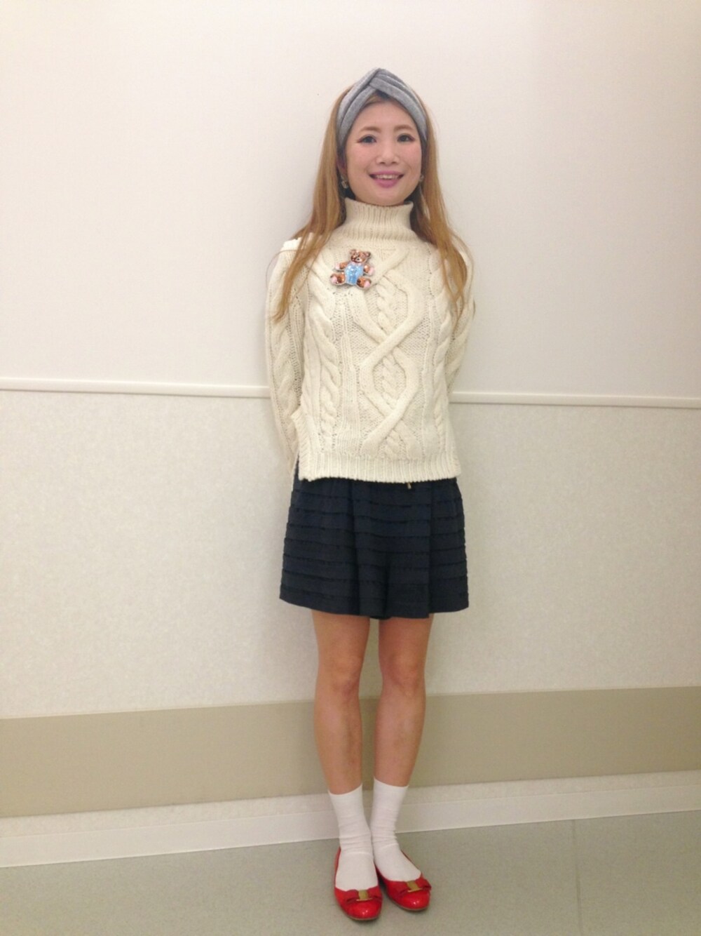 トップス:GINGER ALE ボトムス:3.1 phillip lim ソックス:Ray BEAMS シューズ:ferragamo ヘアターバン:bpr BEAMS 私の中ではシンプルな格好なので、くまのブローチを付けました。 🐻