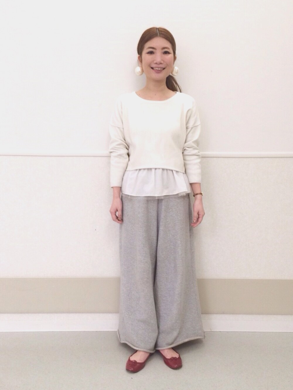 好きな色、白とグレーでまとめました。 アクセサリーはとても大きいピアスのみです。 【トップス】Ray BEAMS 【タンクトップ】Ray BEAMS 【パンツ】UNUSED 【シューズ】repetto