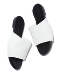 白のサンダル、フラットですがカジュアル過ぎずおすすめです。