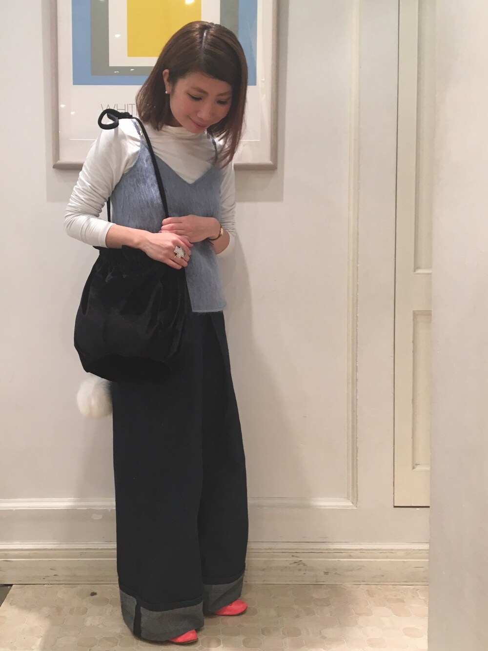 Mayuko Kuniyoshiのショルダーバッグ「Casselini / ポンポン 巾着バッグ」を使ったコーディネート