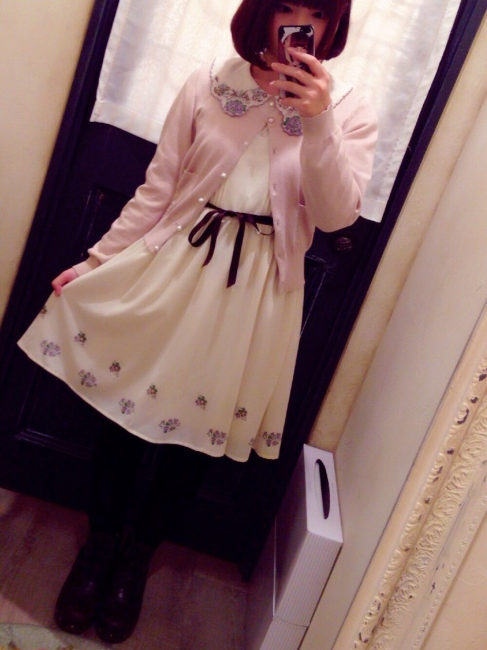 お気に入りのワンピースをきました♡ アンジェラスのワンピースは クラシカルで好きです♡ 流行りに流されていないスタイルが◎