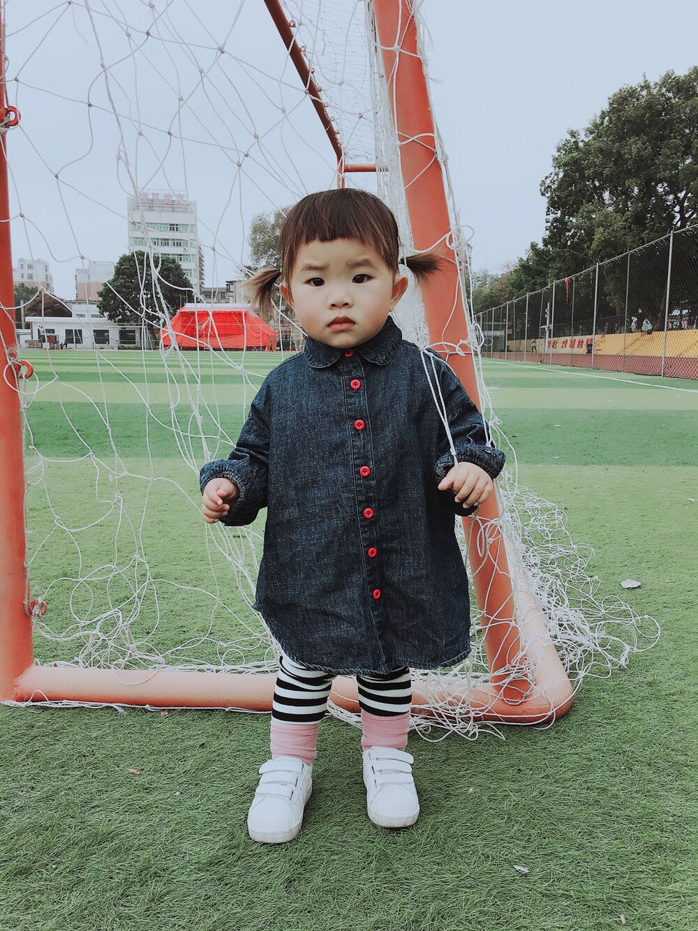 复古排扣真赞,搭配条纹袜裤,加了双堆堆袜,再来个贝壳头