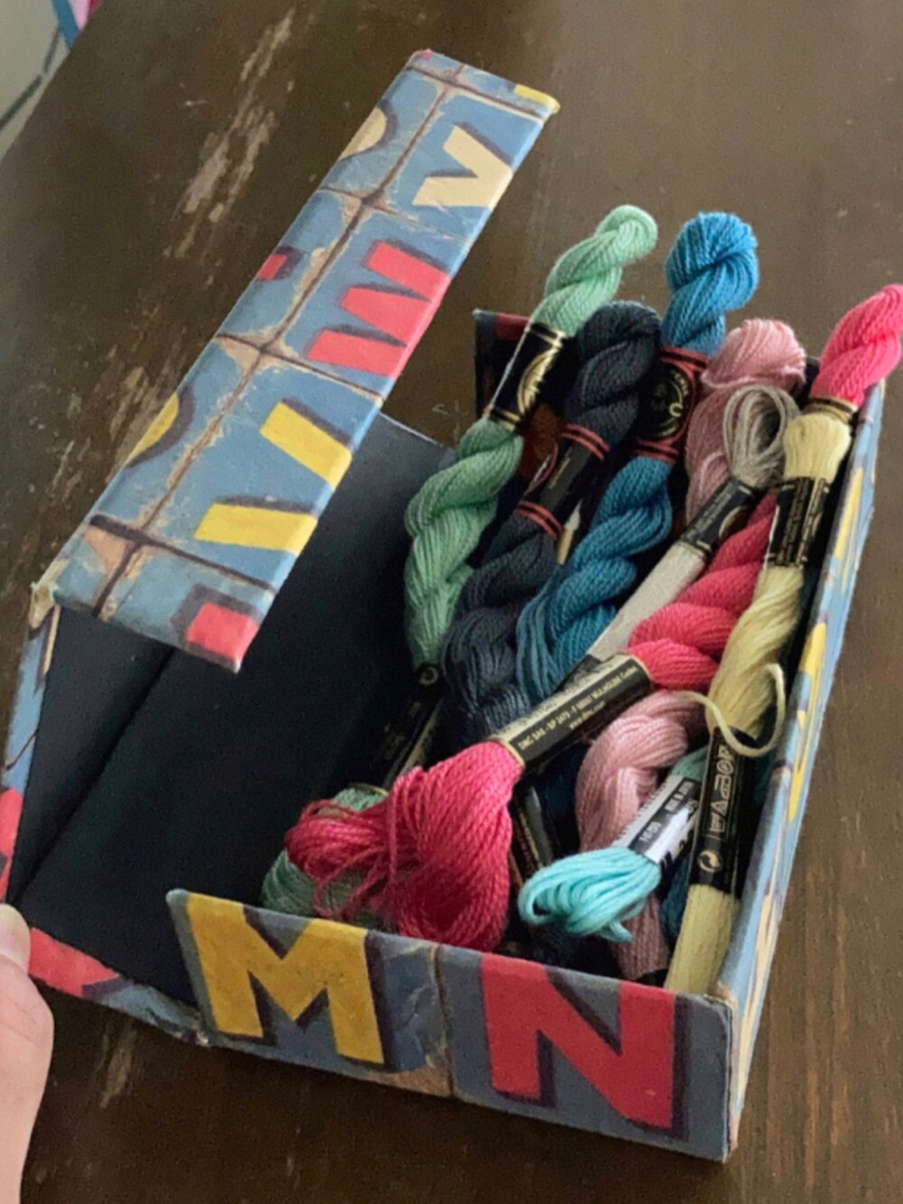 刺繍糸ストックケース☆メンズライクなfaceがお気に入り♡につき再製作。BOXを開けるとお気に入りの刺繍糸でときめきUP。疲れて家に帰ってきてもこのBOXを開けるとそれだけで癒される。アクセサリーケースでも♡