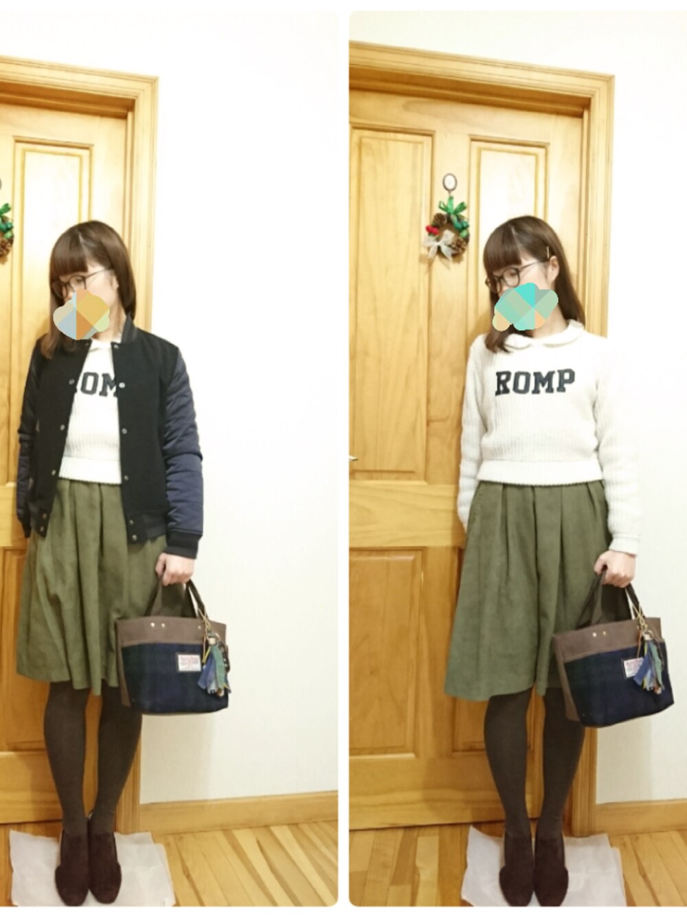 新しくカーキのスカートを買ったので、 早速着てみました*°