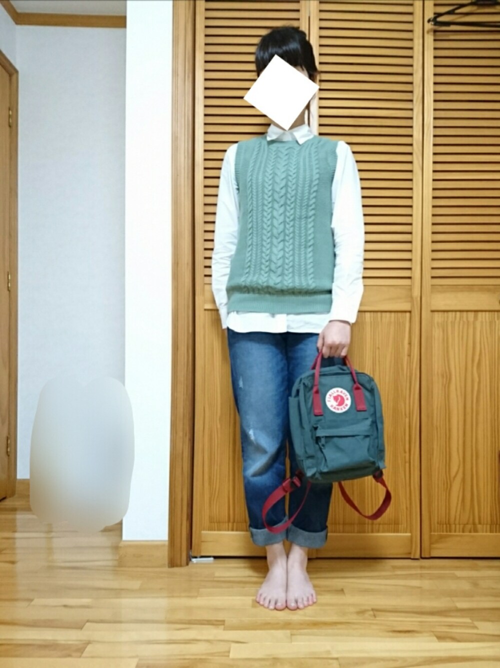 UNIQLOで見つけた、 この絶妙なミント色のニットベスト。 ミント色と言うか、ずんだもち色...??(笑) 気に入って即購入でした...^^; 綿素材だから今の季節も着やすいです♪ 作業dayだったので、GUのボーイフレンドデニムをあわせて超カジュアルに~(*´v`)