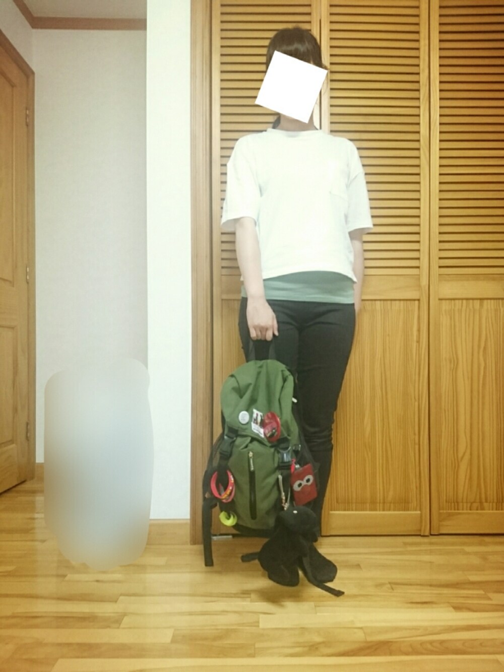 UNIQLO感謝祭で買った クロップドクルーネックTシャツ着ました♪ お仕事時の通勤スタイルです^^; 自転車通勤なので 動きやすくカジュアルにしてます^^* リュックはしまむらで激安でしたっ。 かるくて何でも入って 通勤にぴったりです(*´v`) スクービーの缶バッチとか ラババンとかいっぱいついてます(*´ー`)