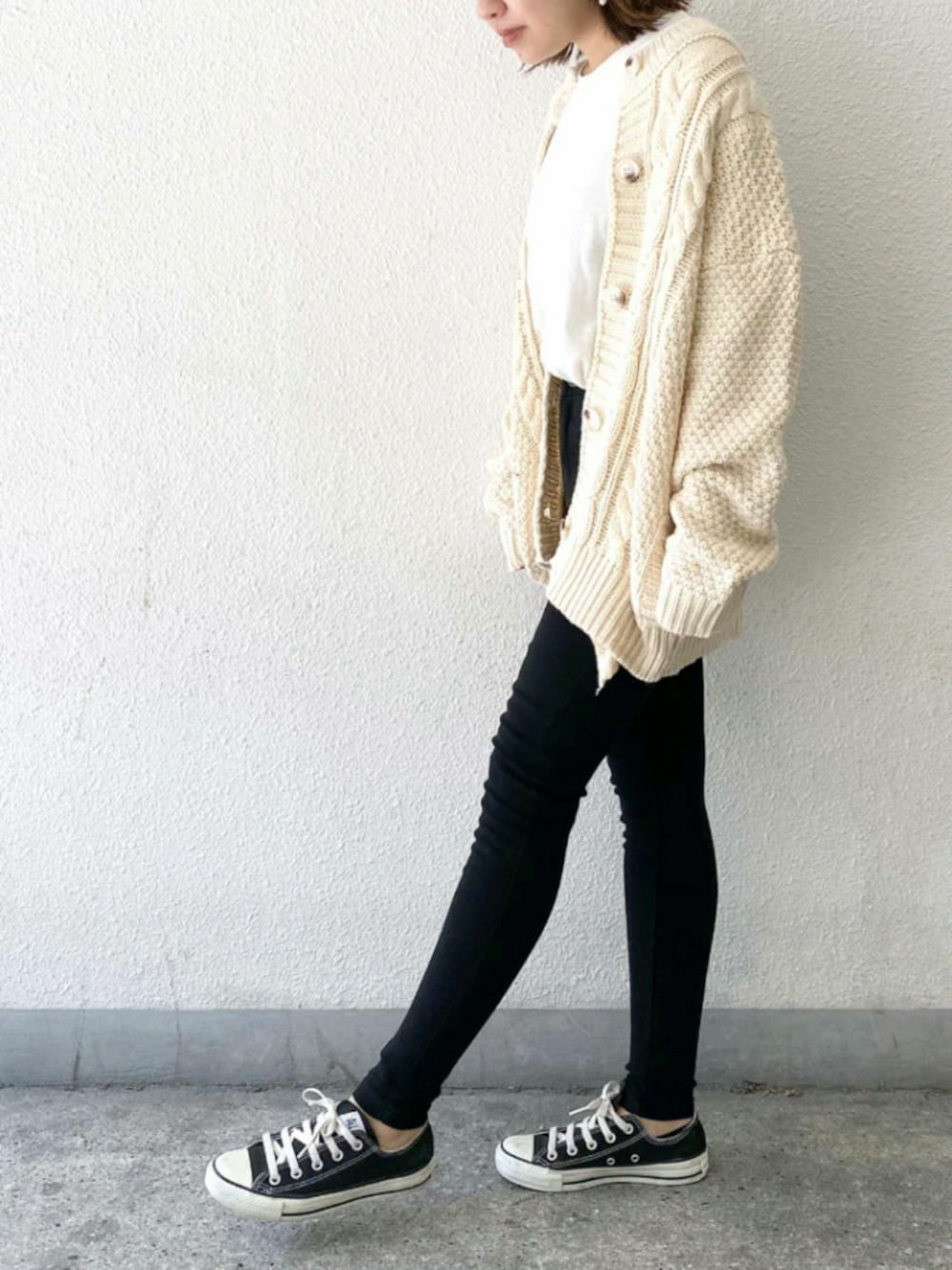 ざっくりなケーブル編みが ナチュラルで可愛いカーデ💕 ポケットつきで この時期の羽織で重宝しそう。