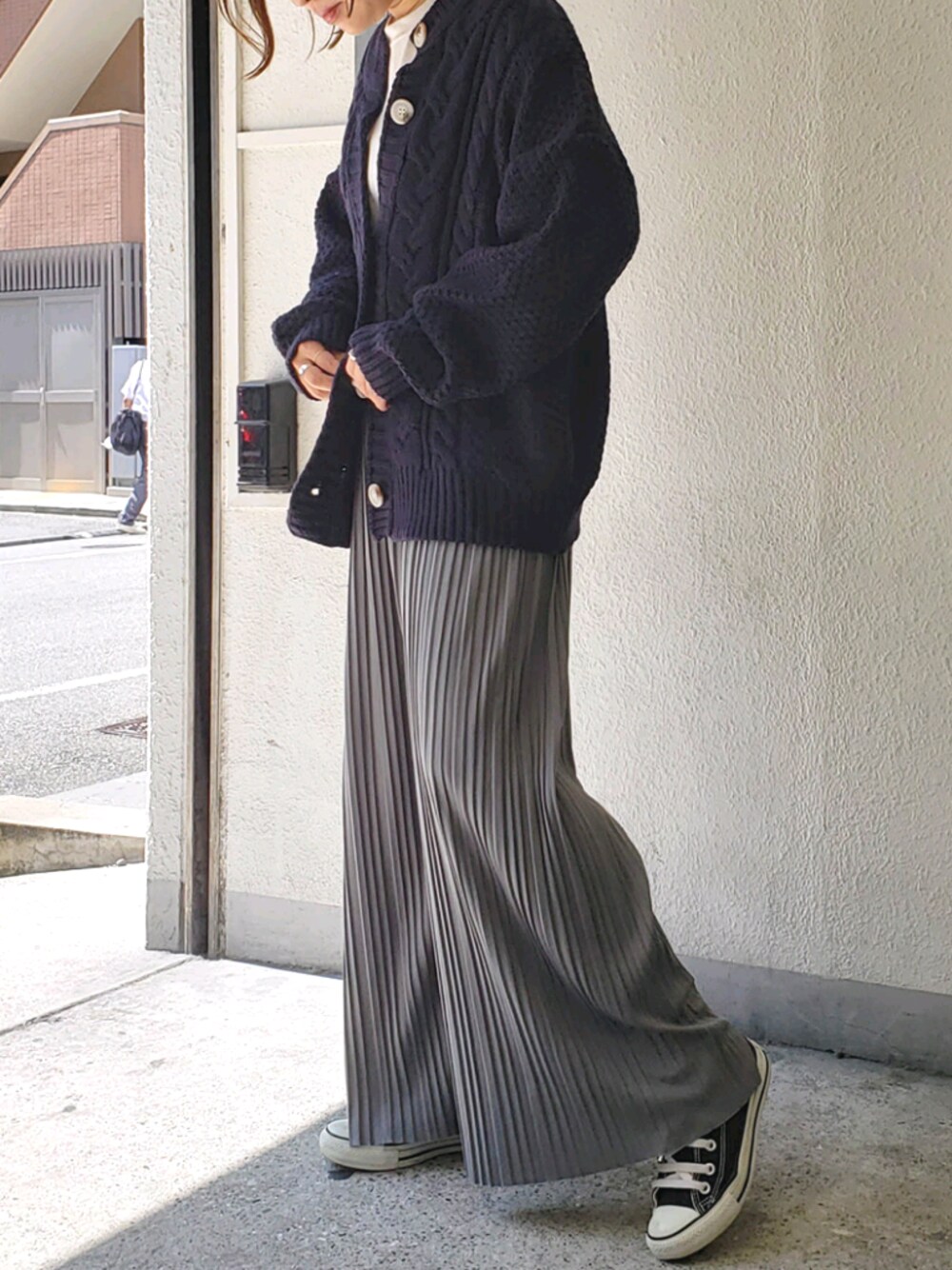 ニットカーデ、ネイビーも 落ち着いてて可愛い。 パンツは履き心地も最高👌👌