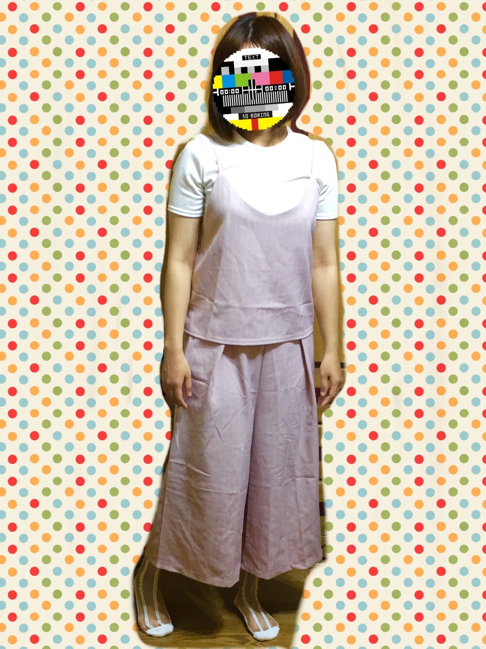 可愛藕粉套裝 不過這樣看起來真的只是153了🤓 臉上貼圖太有趣了一定要用一次😂