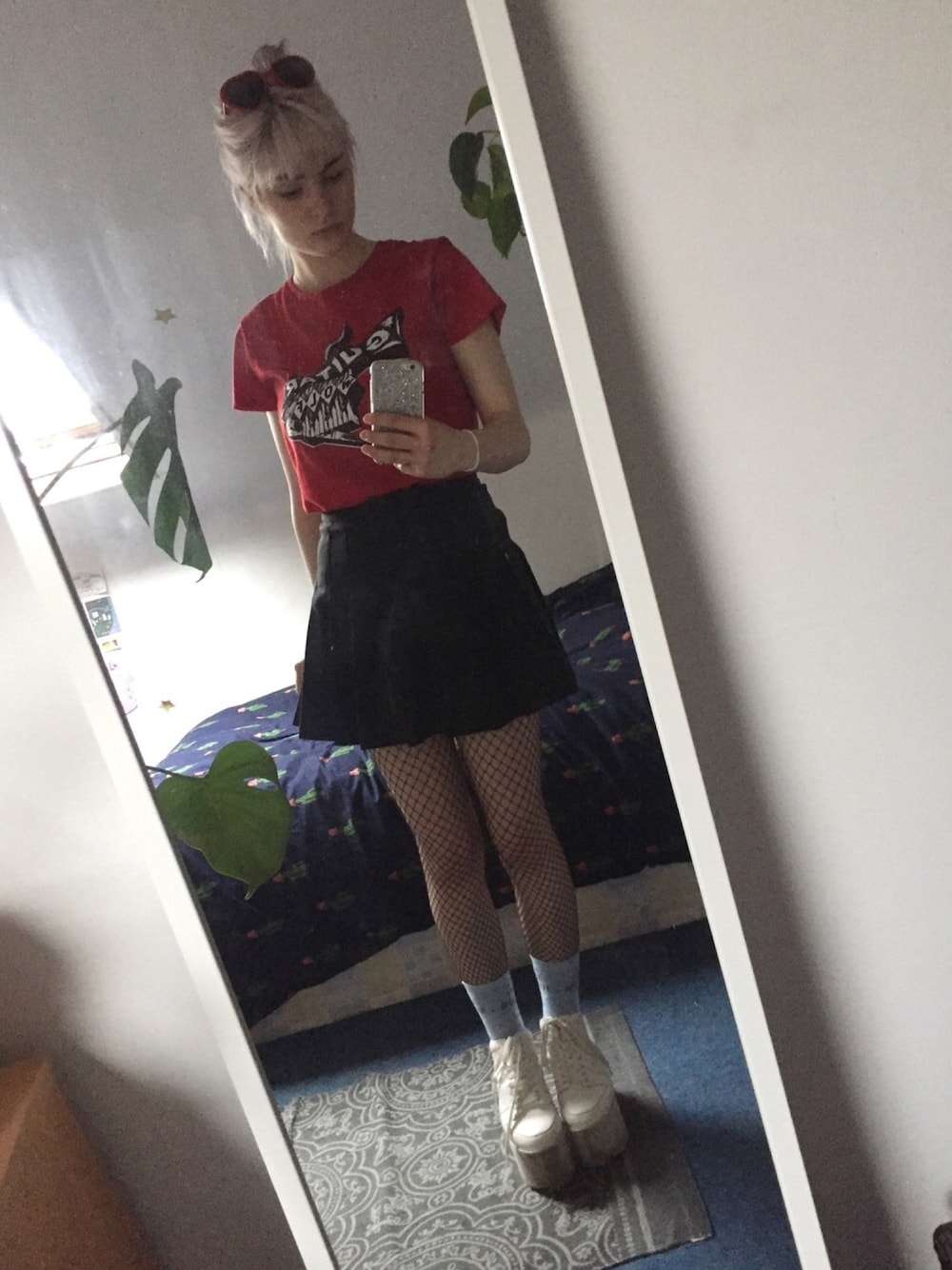 Guitar Wolf のライブでゲットしたシャツにアメアパのテニススカート そしてスピンズの厚底スニーカー♡ 靴下は友達にもらったもので超お気に入り♡ Wore my Guitar Wolf shirt with american apparel skirt and my fave platform trainers ♡♡ Also the cutest socks which were a present from my friend♡