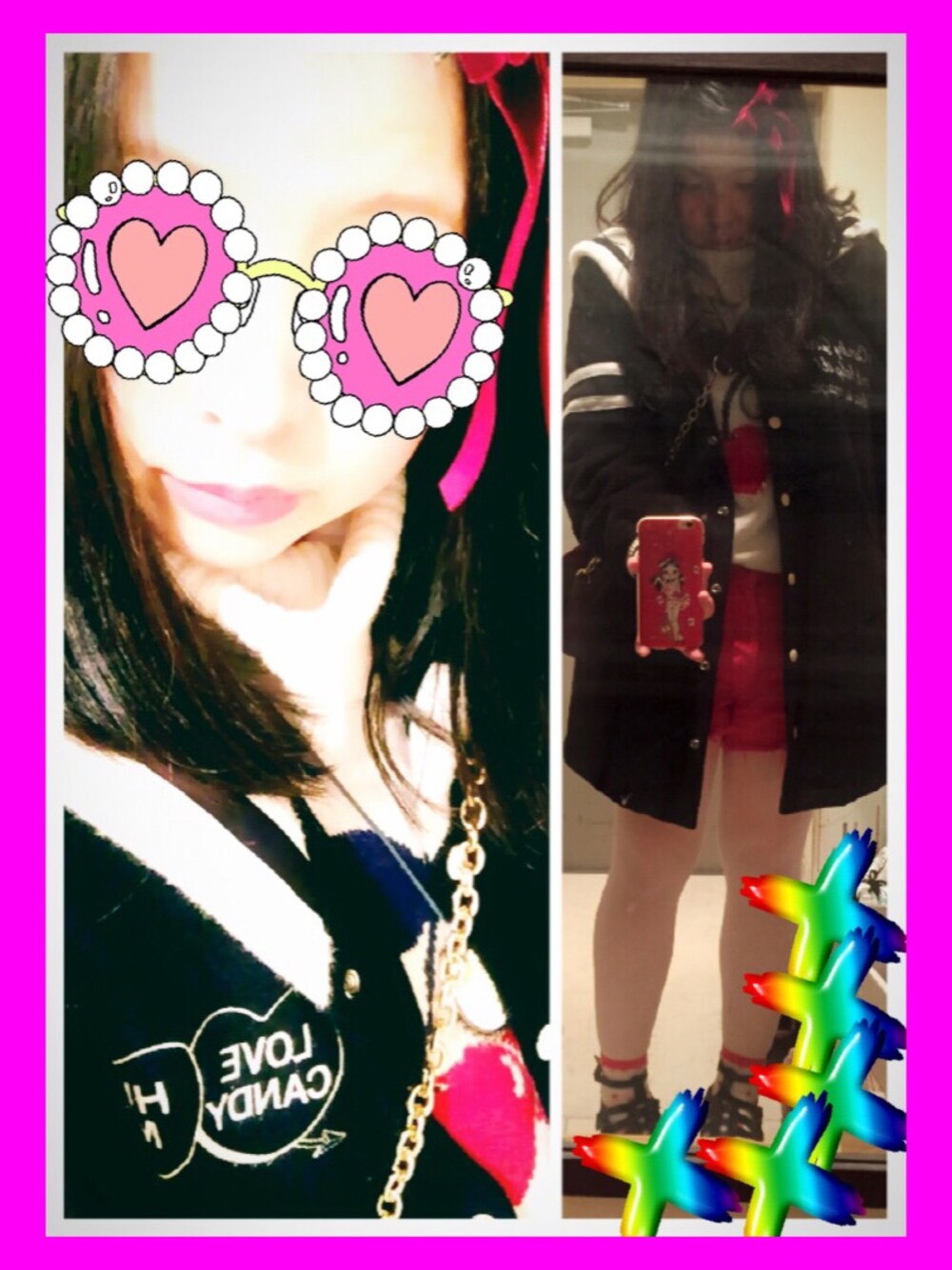家に全身鏡がない😱ので必死に半身鏡で撮る👍w アウター・ニット・デニム candystripper 靴 tokyo bopper とてつもなく見にくいけど全身白赤黒コーデ