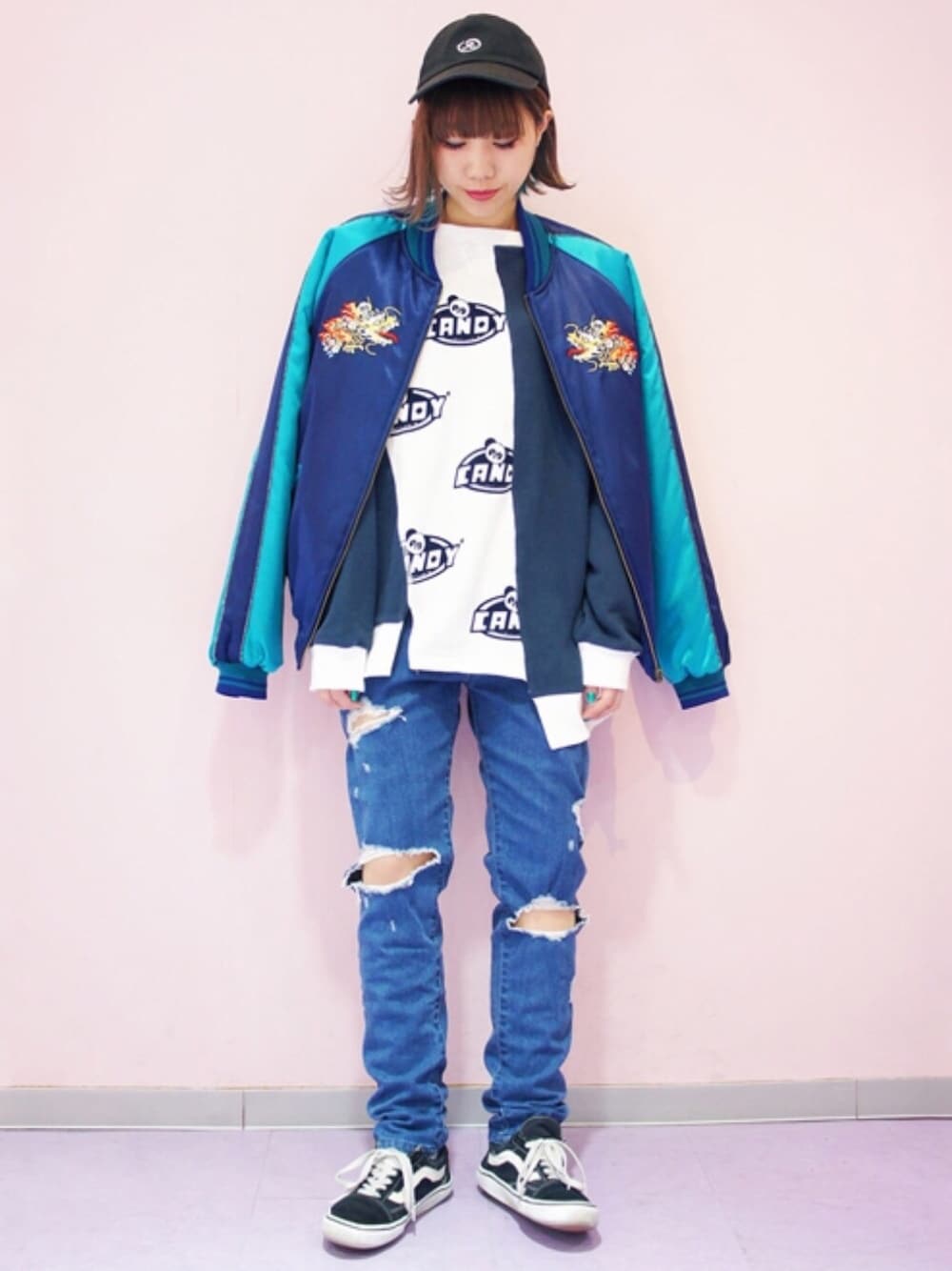 CandyStripper(Candy Stripper STAFF)のブルゾン「PEPE AND DRAGON SOUVENIR ジャケット」を使ったコーディネート