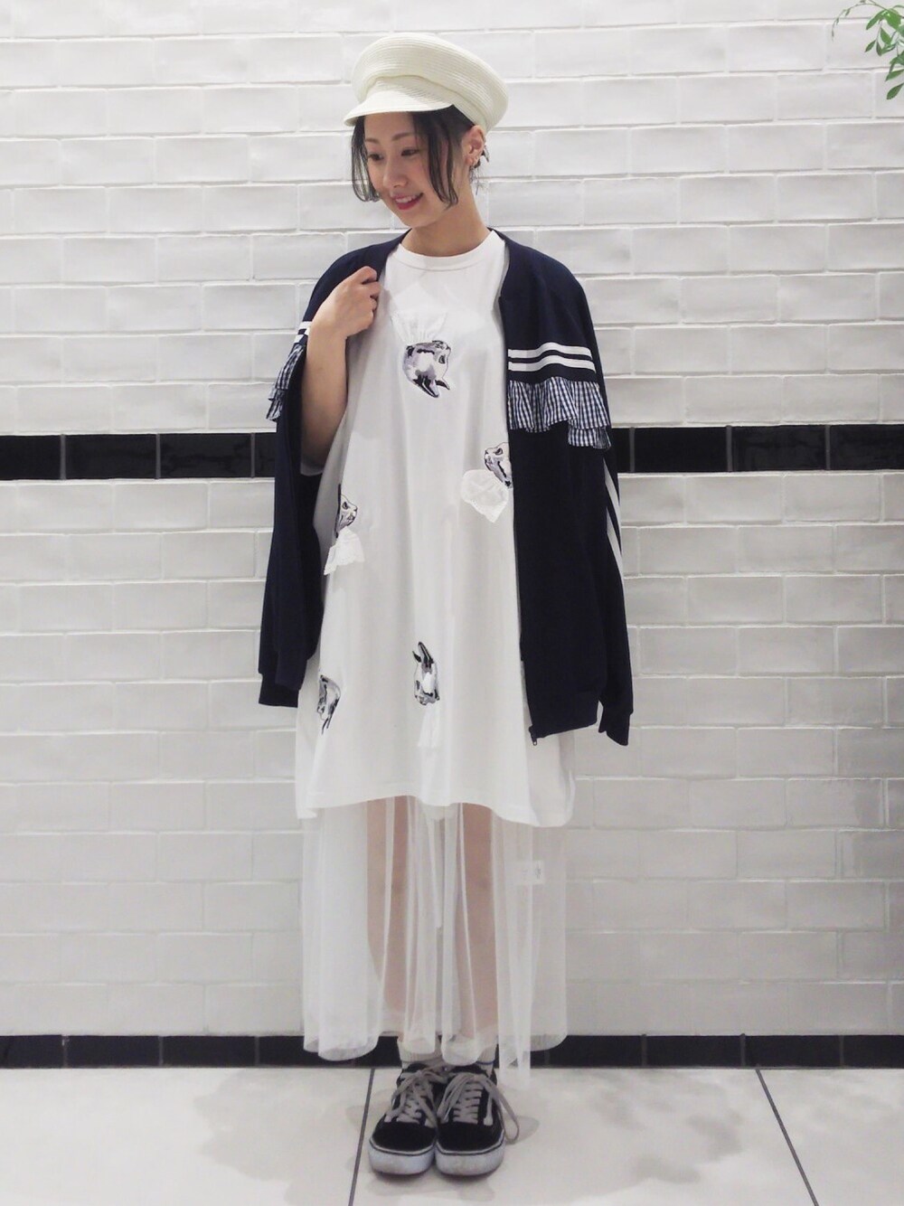 愛らしい猫の刺繍が散りばめられたBIG TEE。 猫の首元にはレースアップリケが丁寧にあしらわれ、フェミニンかつガーリーな雰囲気に仕上がりました。