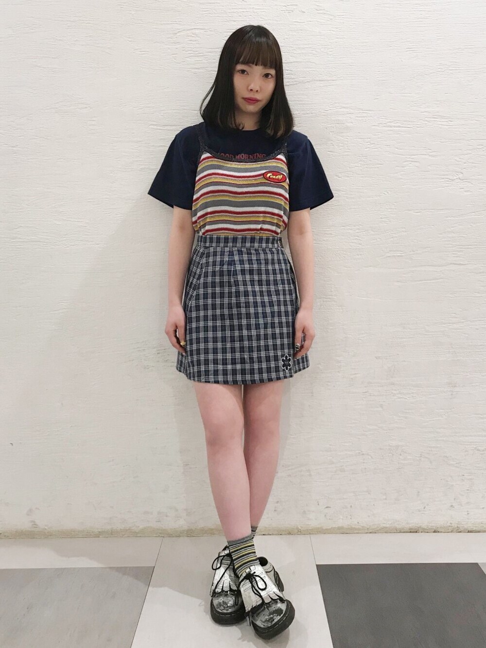 夏らしい鮮やかなカラーのチェックを使用した、ラップ風の台形ミニスカート。裾にあしらわれたフラワーモチーフの刺繍で90sな雰囲気をプラス。ベーシックなTシャツやキャミソールとの相性も◎!