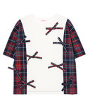 サイドをチェック柄で切り替えたTOPS。ランダムに散りばめたリボンが遊びごころのある一着です。