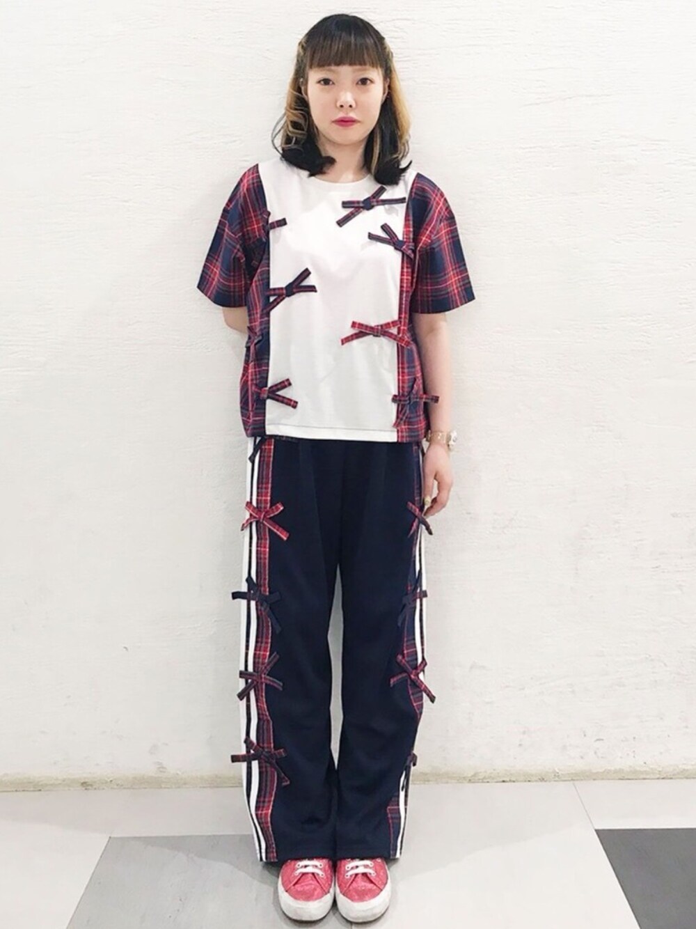 CandyStripper(Candy Stripper STAFF)のTシャツ/カットソー「CHECK RIBBON TRIMMED トップス」を使ったコーディネート