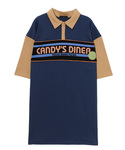 胸もとのロゴと背中のPEPEがピザに乗ったグラフィックがかわいいポロワンピース。夏にぴったりのPOPなカラーリングも特徴。