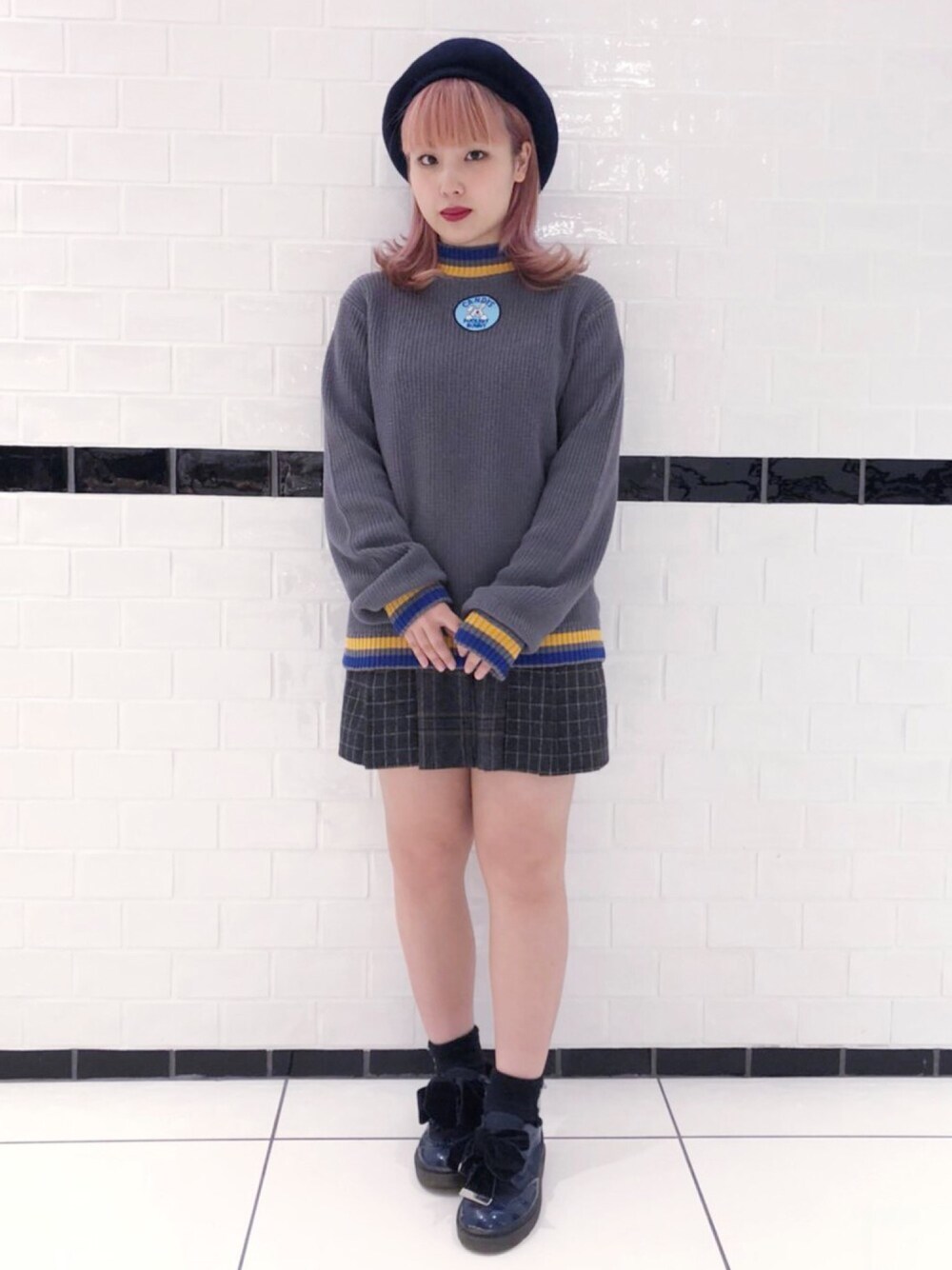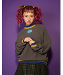 胸もとのワッペンやリブの配色ラインが90sな雰囲気満点のニット。 あたたかみある厚手のリブ編みでスクールガールなスタイルにもマッチ!