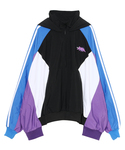 綺麗なフレアラインのスカートとスポーティなアノラックを合わせたカジュアルコーデ。 上下ブラックの組み合わせの中にブルーのカラーがきわ立つ!