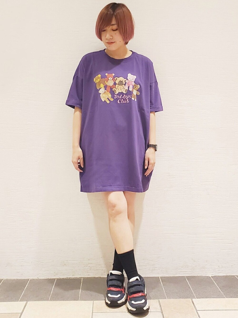 くまのグラフックが可愛いオーバーサイズのTシャツはワンピース風に着こなして!