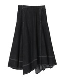 メンズライクなシルエットのニットトップスには、ボリューム感のあるデニムスカートを合わせて女性らしさも忘れずに!