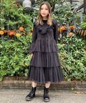 ブーツを合わせて甘すぎないブラックのチュールワンピースコーデ♡
