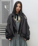 寒い日にぴったり、レイヤードデザインのMA-1にリメイクスカートを合わせた、パンクテイストコーデに♡