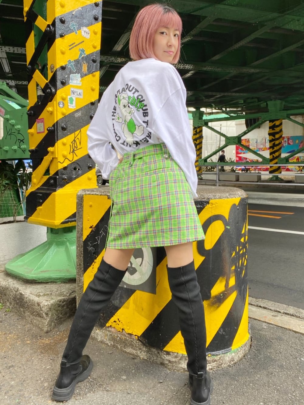 春には欠かせない! ロンTスタイルコーデ! ライダースディテールがポイントのミニ巻きスカートと合わせてシルエット重視に♡