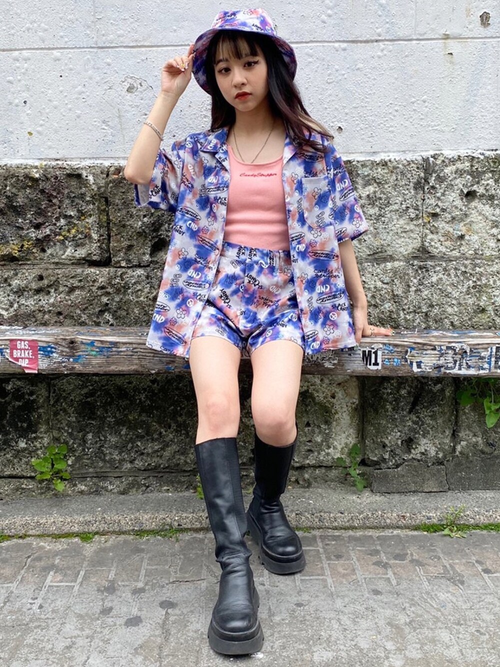 タイダイ柄のセットアップとお揃いのバケットハットを合わせた、おしゃれストリートスタイルに♡