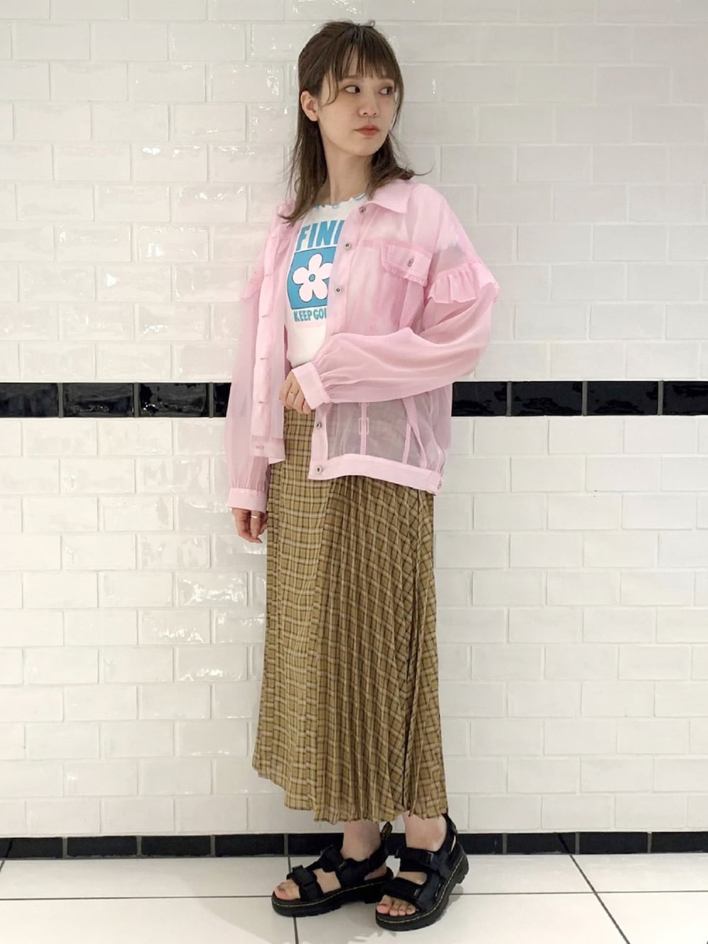 軽やかな素材のプリーツスカートに 温度調節に活用できるシアーシャツを合わせた、 大人カジュアルな夏スタイル◎