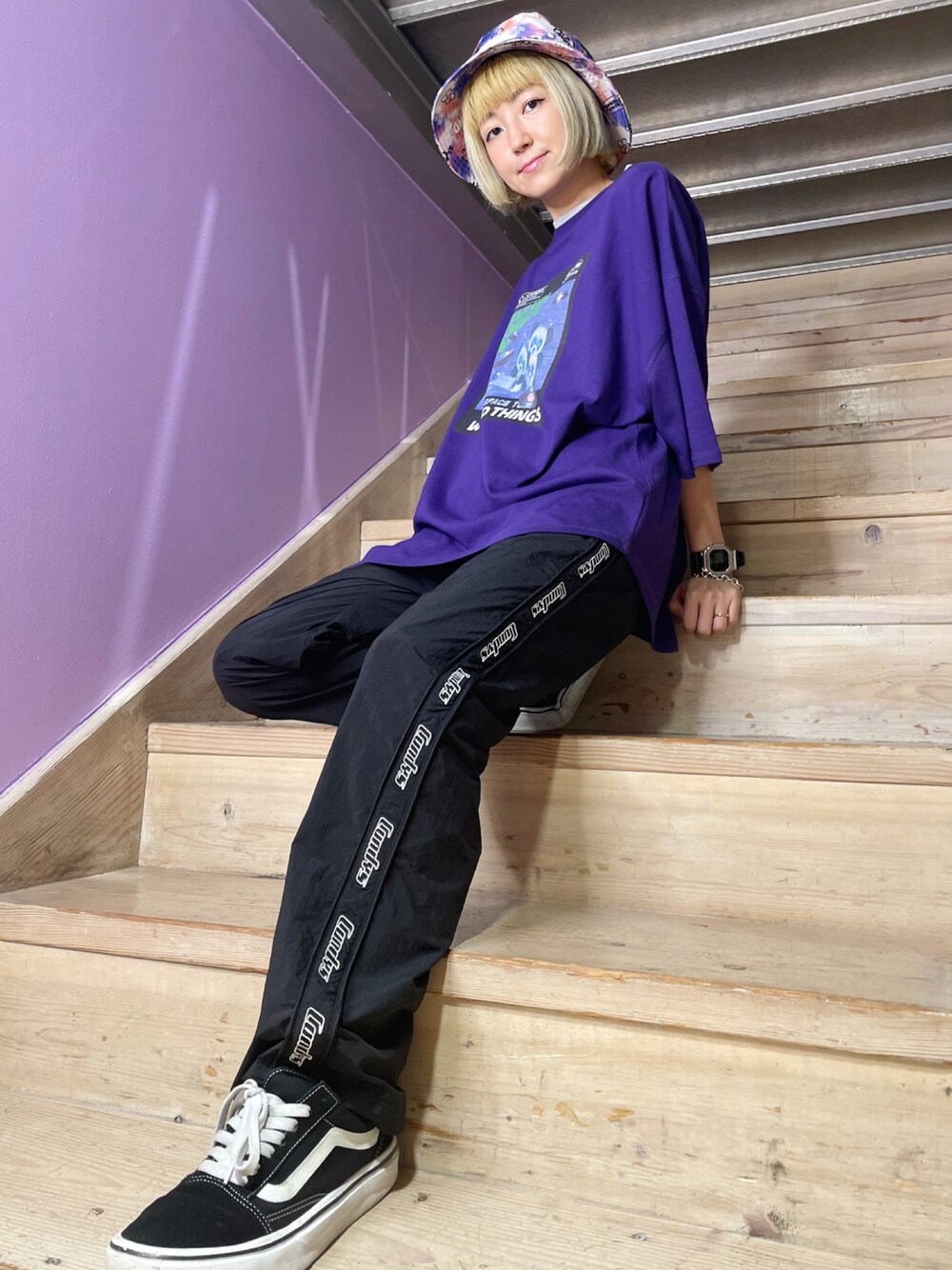 夏にぴったりなコーデ! トップスのPEPEグラフィックが可愛い ストリートスタイル◎