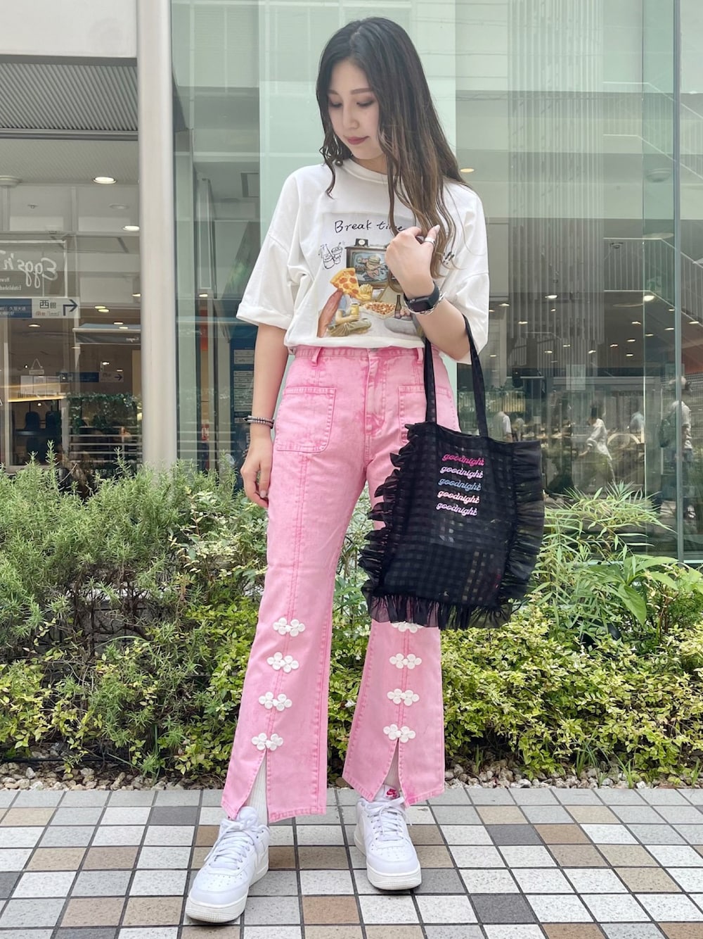 CandyStripper(Candy Stripper STAFF)のトートバッグ「GOOD NIGHT FRILL トートバック」を使ったコーディネート