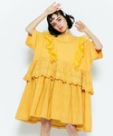ビッグシルエットのワンピースにロングブーツを合わせた秋先取りコーデ♪