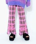 バックプリントがカラフルでPOPなロンTにフレアシルエットが綺麗なチャイナパンツを合わせたコーディネート♪ ファーのショルダーバッグが個性引き立つおすすめアイテム!