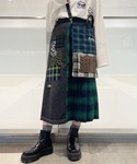 メンズライクなトップスに、チェックのパッチワークがポイントのデニムスカートを合わせた、秋おすすめコーデ♪