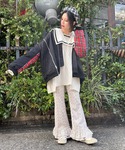 ZIPで切り替えられた、さまざまな着こなしが出来るリメイク風MA-1に セーラーニットとフレアパンツを合わせた 個性的でおしゃれなガーリースタイルに♡