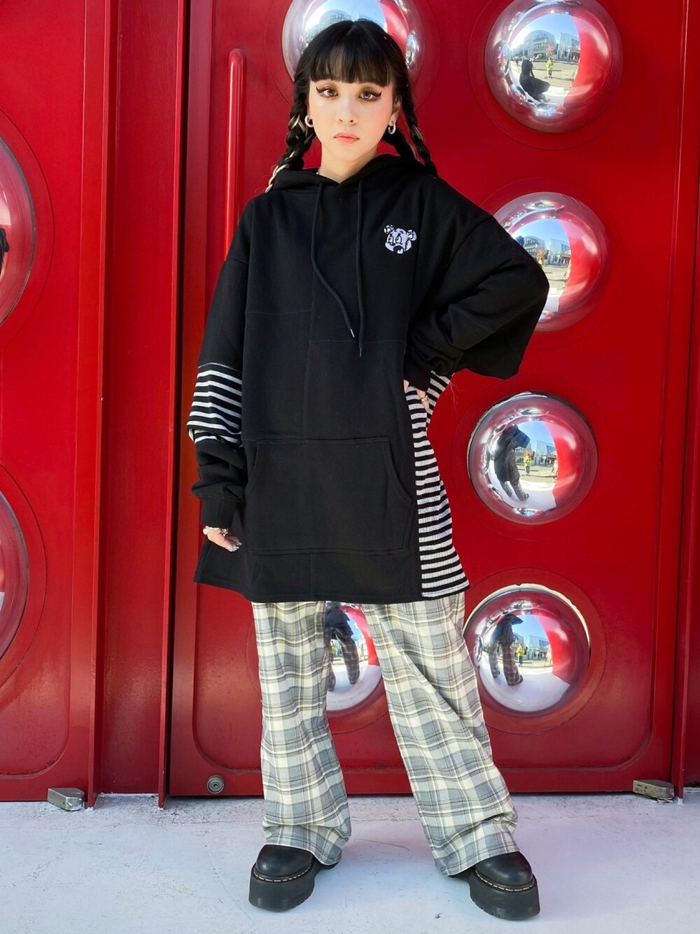 CandyStripper(Candy Stripper STAFF)のパーカー「CANDY PATCHED BORDER HOODIE」を使ったコーディネート