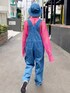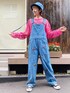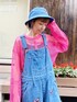 バタフライの刺繍を施した ヴィンテージライクなサロペットに ピンクのメッシュトップスを合わせた アウトドアコーデ♡