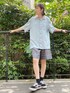 メンズライクなシルエットの ボーリングシャツに チェックのハーフパンツを合わせた 夏コーデ♡ お出かけにぴったり♫