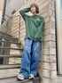 グリーンのロンTに カーゴパンツを合わせた ストリートコーデ♪