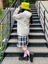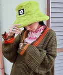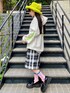 ホワイトのフーディーと チェックのハーフパンツに ライトグリーンのファーハットを合わせた カジュアルコーデ♪ candystripper原宿店/久慈/148cm