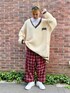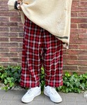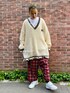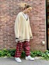 レッドのチェックパンツに カレッジ風のニットを合わせた 秋のおでかけコーデ★
