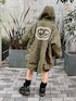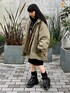 ブラックのワンピースに カーキのショート丈の モッズコートを合わせた ストリートコーデ★ candystripper原宿店/久慈/148cm