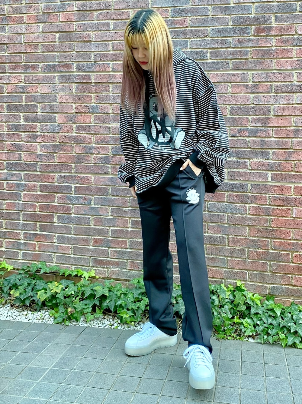 デザインがポイントのパーカーに トラックパンツを合わせた メンズライクコーデ♪ candystripper原宿店/石本/160cm