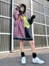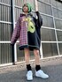 異なる生地を組み合わせたリメイク風の フード付きワンピースに スニーカーを合わせた カジュアルコーデ★ candystripper本社/小原/162cm
