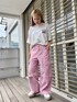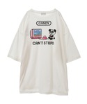 PEPEのグラフィックがポイントの 定番Tシャツに ピンクのカーゴパンツを合わせた カジュアルコーデ♪ candystripper原宿/石本/160cm