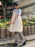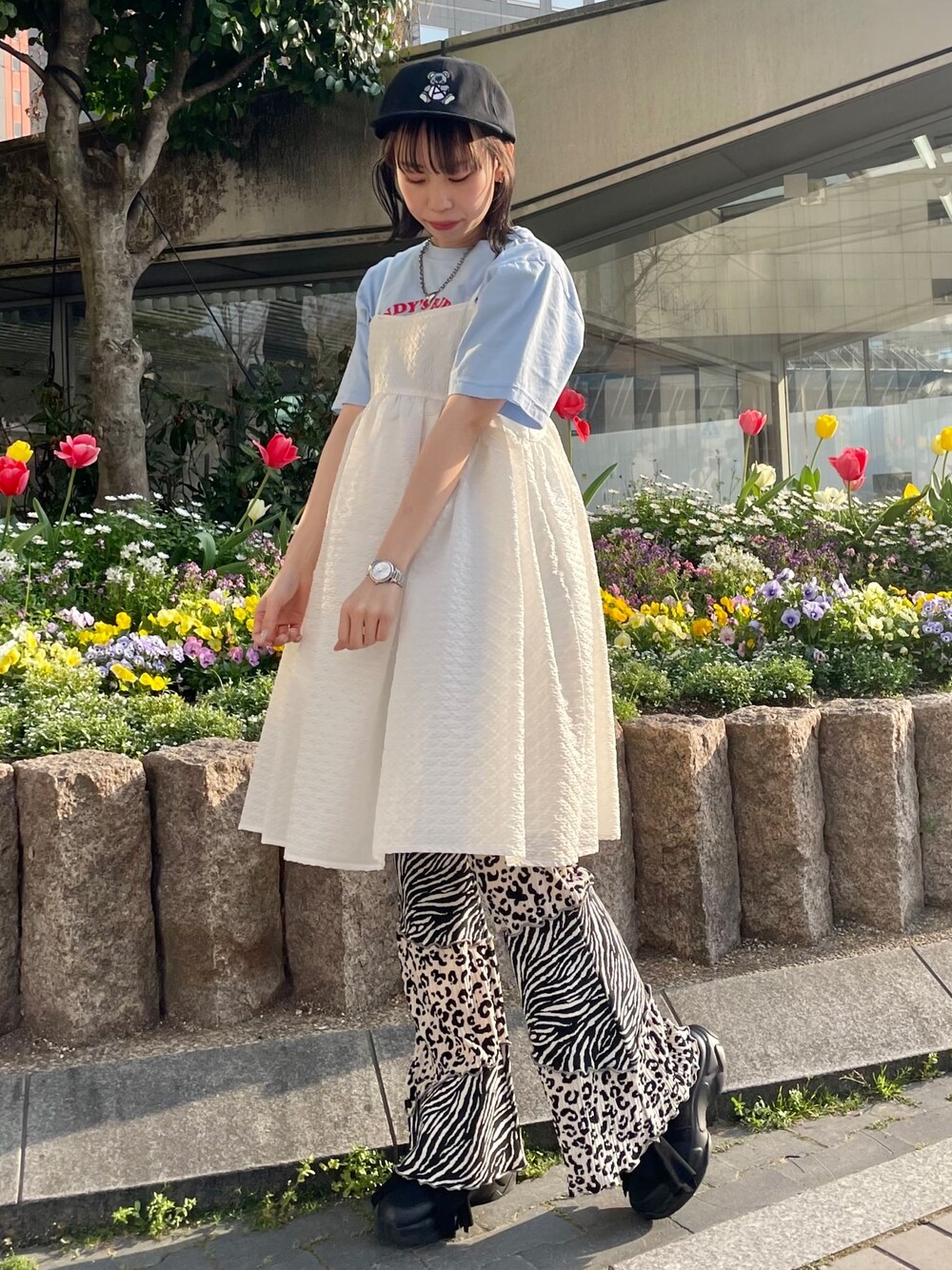 定番Tシャツにキャミワンピースと フレアパンツを合わせた 春のガーリーコーデ♡ candystripper福岡/河野/160cm