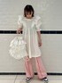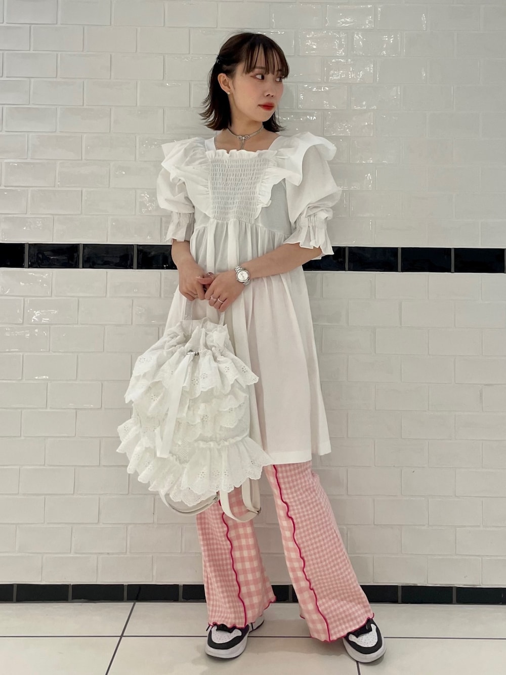 ミニ丈のワンピースに ギンガムチェックの フレアパンツを合わせた ガーリーコーデ♡ candystripper福岡/河野/160cm