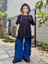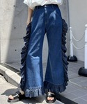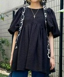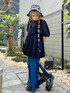 ボリュームのあるパフスリーブと バックのリボンが特徴のトップスに デニムパンツとバケットハットを合わせた 大人カジュアルコーデ♪ candystripper原宿/久慈/148cm