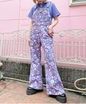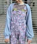 サニーフラワー柄のデニムサロペットに ライトブルーのボレロと コットンレースのバケットハットを合わせた休日スタイル♡ candystripper本社/小原/162cm